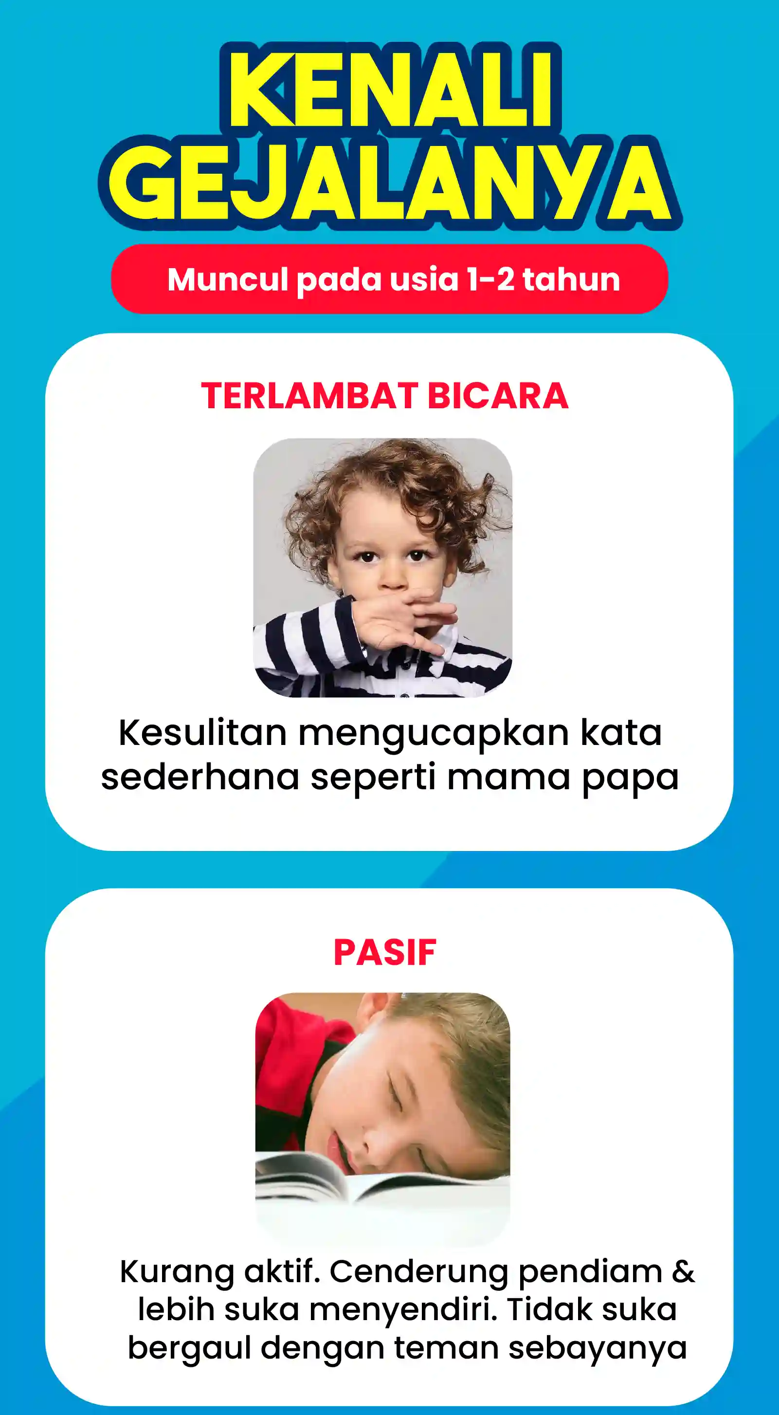 "Bayangkan kembali hanya karena Speech Delay masa depan anak mejadi terancam mulai sekarang jadilah orangtua yang peduli dengan tumbuh kembang anak, jika anda ragu sama saja harta lebih berarti daripada sibuah hati dan masa depannya."
